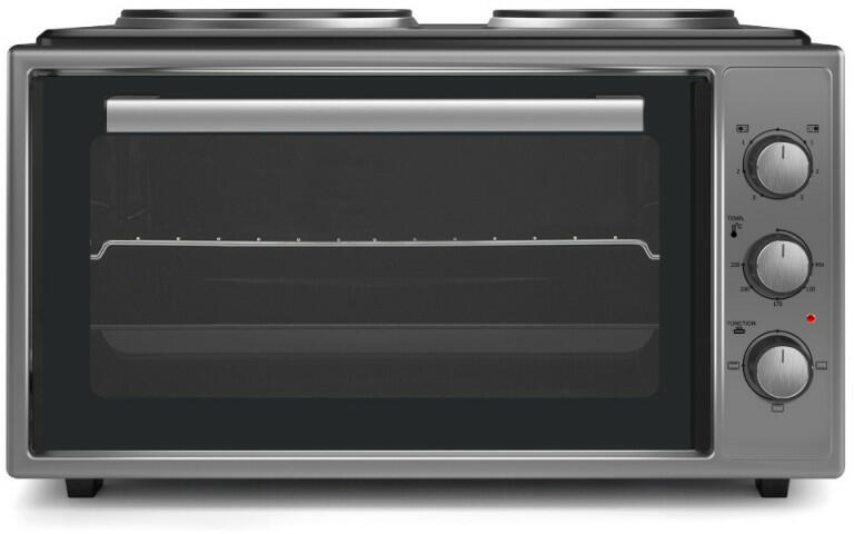 Megjegyzés: Ez a leírás automatikusan le lett fordítva magyarra. Foreti kis tűzhely - Maximális teljesítmény: 3000 W - A nagy főzőlap teljesítménye: 1500 W - A kis főzőlap teljesítménye: 1000 W - Sütőteljesítmény: 1500 W - Sütő kapacitása: 46 liter - Előremenő hőmérséklet tartomány: 120 - 250C - Két fűtőelem: Felső fűtőelem: látható Alsó fűtőelem: zárt - Zománc bevonat - Dupla biztonsági üveg az ajtón - Állítható termosztát - Időzítő akár 90 percig - Túlmelegedés elleni védelem - Tápellátás visszajelző lámpa - Csúszásmentes lábak - Négyzet alakú serpenyő a készletben - Szürke színű - Tápfeszültség: 220-240 V, 50-60 Hz - Méretek: 59x47x33 cm - Súly: 15,7 kg FONTOS: Lehetőség a sütő egyidejű működtetésére a két főzőlap közül csak az egyikkel!